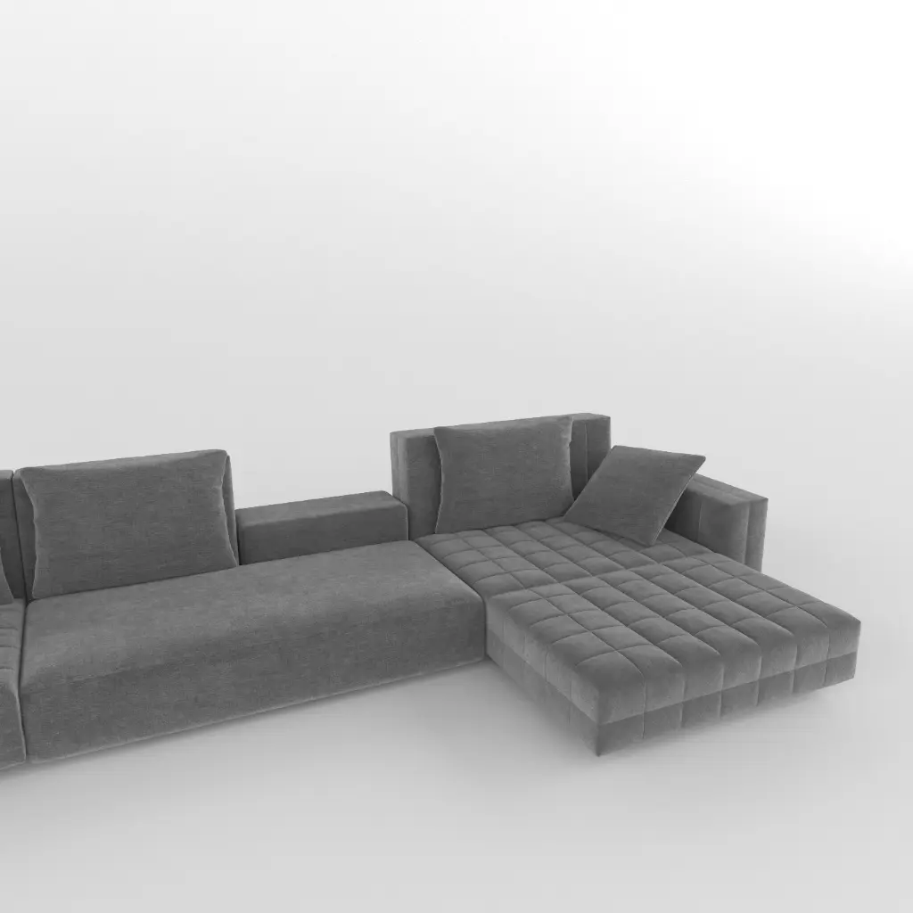 The Dune Hustle Sofa, inspired by the seventies, combines unique design with ergonomic comfort. Featuring metal hidden feet and a matching frame, with a square sliced toggle tile texture of fabric. it seamlessly blends aesthetics and coziness. It's a corner or L-shape sofa and it can be the master sofa for a sofa set. Innovative pocket spring technology and polyurethane padding provide consistent softness. Its compact design adjusts to changing spaces, needs, and tastes. With tone-on-tone stitching, it showcases Vincent's home's craftsmanship, while concealed design evolution and spacing bring innovation. Discover sophistication and technology in the Dune Hustle Sofa.